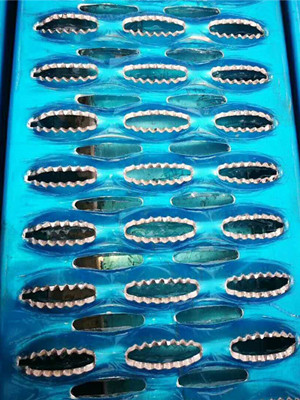 鋸齒防滑板是鱷魚嘴防滑板的另外一個(gè)名稱,是采用好品質(zhì)的金屬板材在數(shù)控沖床上面使用定做的模具連續(xù)沖裁生產(chǎn)制造的一種帶有防滑效果的金屬板材。